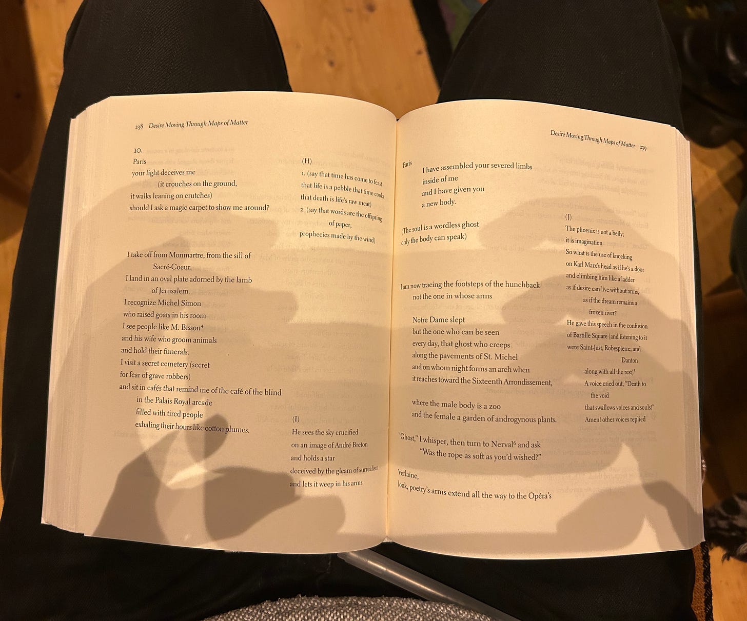 Last week I sat down to write you. I wrote for hours, difficulty, in the Forney library near my sublet, and it felt hard and a bit forced. I wanted to share with you so much that I haven’t had the chance to share — snow in Paris, research I’ve conducted on the history of photography in 19th century Iran, the book The Waves by Virginia Woolf, the readings I participated in in Paris (After 8) and Brussels (Zig Zag) at the end of November, and my approach to setting resolutions for the new year. Let it suffice to say that the readings went well, that I had the pleasure of helping Erin Honeycutt release the chapbook Dear Enheduana, (Ugly Duckling Presse) into the world in Paris and performed bibliomancy with an anthology of poems by Adonis in Brussels and pulled this :